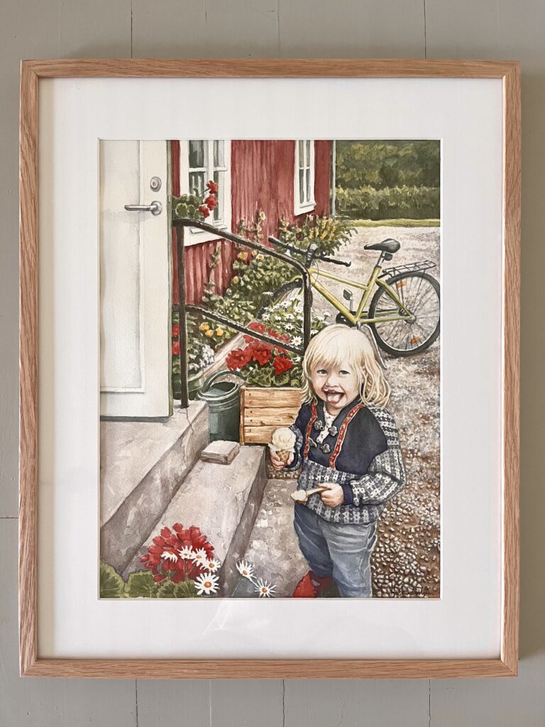 Akvarell 30 x 40 cm (ramad 42 x 52 cm) ramad med passepartout och ekram. De flesta bilder är till salu. Kontakta mig vid intresse.